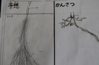 土の中で、植物の根はどんな姿をしているのだろう?長さを測ると、18?以上の根もありました。「根が横に広がってる」「数えたら60本より多かったよ」「根から水を飲んでるから、ビーカーの水はだんだん減るのかな?」など、友達と発見や疑問を伝え合っていました。