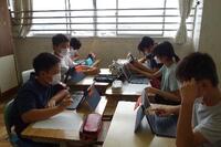 6年生の韮山史跡めぐりがいよいよ一週間後にせまりました。各グループ、行程の計画を立てています。タブレットの「メタモジ」というソフトに入っている行程表に、自分達で入力をしていきました。困ったときには、先生に相談しながら進めていました。