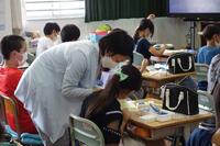3年生の「健口教育」が行われました。歯科医師の村上先生と歯科衛生士の秋元先生から、歯みがきの大切さを教えてもらいました。給食を食べ終わった後に、すぐに歯を磨く子が多く、今日の勉強が生かされているなと感じます。