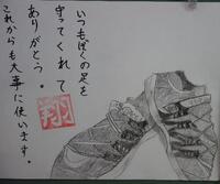5年生は、図画工作でデッサン「自分のくつ」に取り組みました。靴に対する自分の思いを添えてありました。今週の参観会で、御覧ください。廊下に掲示してあります。