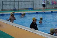 2年生の水泳の授業が始まりました。今週は、子どもたちの膝くらいの水位で行います。