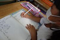 それぞれの進捗状況に合わせて、個別学習に取り組んでいます。「先生、あまりのあるわり算が、すらすらできるようになりました。」と報告してくれました。取り組む姿勢が素晴らしいと思いました。