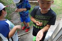 2年生が生活科の学習で、「生き物見つけ」をしていました。見つけた生き物を、職員室まで見せにきてくれました。「見て見て!ダンゴムシがいたよ」「バッタの赤ちゃんだよ」とても嬉しそうでした。