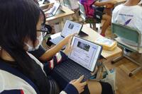 5年生の理科の授業です。子どもたちの個々のタブレットに、先生からワークシートが配られました。教科書やインターネット等を使って、調べていきました。
