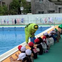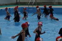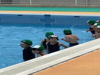 水泳の授業が始まりました。水の神の登場の後に、しっかりとルールを守りながら泳ぎ始めました。これからも楽しみながら、泳ぐことに親しんでいきましょう。
