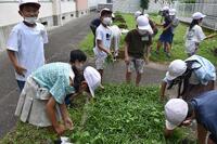 さて、体育館裏の3年生の畑は、4月に耕したのに、もう雑草がボーボーです。「土に栄養がいっぱいある証拠だね」「先生、ミミズは土をキレイにしてくれるんだよね。」と話しながら、みんなで雑草をぬきました。