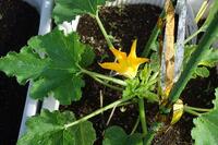 ズッキーニの花が咲いてから5日目、なんと!大きく育ったズッキーニがなっていました。(写真左)子どもたちが運動会で頑張っていた間に、ズッキーニも成長していました。