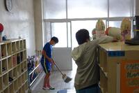 「なかなか汚れが取れないなぁ~」細かいところまでゴシゴシ。全員で一生懸命に清掃し、とてもきれいになりました。6年生、ありがとうございました。