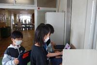 先生がオルガンでメロディーを弾いていました。毎時間行っている、曲についての質問タイムです。質問の内容について、(例)「何拍子の曲でしょう?」、「曲の名前は何でしょうか?」、「作者の名前は?」、「長調でしょうか、短調でしょうか?」などです。子どもたちは、質問の答えが分かったら、先生に伝えにきます。正解した子どもは、ガッツポーズをしていました。