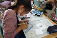 新しい文字に取り組みました。お手本をよく見て、お手本の文字を書き順通りに指でなぞります。