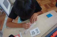 自分の名前の一文字をとっているのでしょうか、消しゴムはんこ作りに挑戦中です。難しい文字を選んでいる子もいました。集中して取り組んでいる姿が印象的でした。