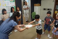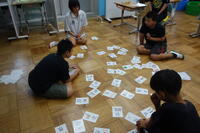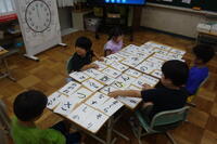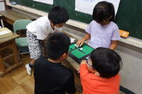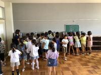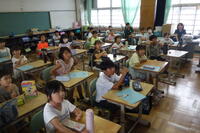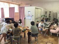 なかよしでは、カルタを使っての学びです。低学年はひらがな、高学年は漢字です。読み札を聞くときはニコやかに、札を探すときは真剣に、楽しみながら言葉に触れています。1年生は、夏休みの思い出発表会をしていました。発表もさることながら、その後の、質問や感想などを、しっかりと言えていて感心しました。