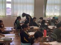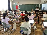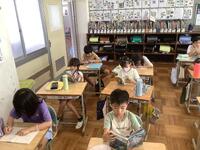 今日はWBGTは「危険」レベル、運動場に出られない日が続き、子供たちにとっては残念です。5時間目の様子です。