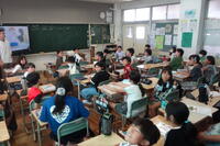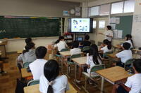 どのクラスの子供たちも、電子黒板に終始注目して、集中して話を聞いていました。校長先生の話の中では、4月からこれまでの子供たちの様子を画像で紹介しながら、途中、クイズも入れて楽しくふり返りました。夏休みに頑張ってほしいことも伝えられ、子供たちは、夏休みへの期待と意欲が更に高まったようでした。