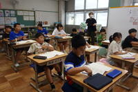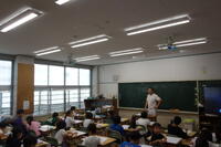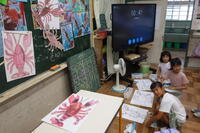 1年生は図工での制作に集中して取り組んでいました。1つのクラスは、夏休みの思い出を大きく画用紙に、もう1つのクラスは、スクラッチ(ひっかき絵)に取り組んでいます。2年生の1つのクラスでは、道徳で基本的な生活習慣の大切さを学んでいました。友達の意見を聴く姿勢が立派でした。