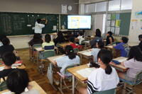 3年生は、社会科で三島で生産している野菜について学んでいます。資料を見ながらの発表でしたが、たくさん手が挙がって、やる気にあふれていました。4年生は、学年合同で、地域の安全を語る会の発表練習です。先生方に見てもらいアドバイスをもらいます。待っているグループは、準備に余念がありません。