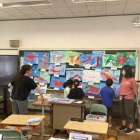 3年生は、Metamojiに貼り付けた写真を電子黒板に写しながら夏休みのできごとの紹介です。それぞれの思い出が興味深かったです。4年生は、理科で「夏のいきもの」についてタブレットにまとめていました。手書きのスケッチが素敵でした。なかよしでは、合同で9月のカレンダーづくりをしています。先を見通す機会にもなります。