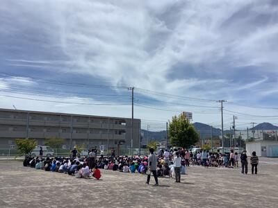 今朝は、2年生が運動場で学年集会を実施しました。久しぶりの曇り空ということもあり、運動場でのびのびと、企画していた学年ドッジボールを楽しむことができました。「外で、ボール投げるの久しぶり!」「今日は、涼しい!!」と嬉しそうにしていました。昨日は、昼休みも外へ出られず残念だったので、余計に嬉しかったようです。長引く猛暑が早くおさまってくれるといいですね。