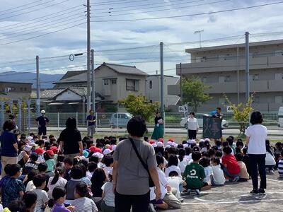 火災を想定した避難訓練を行いました。教頭先生の放送を聞いた後、教室から素早く避難を行うことができました。避難中には、火災の煙を吸わないように、ハンカチで口を覆うことを心がけることもできていたと感じました。