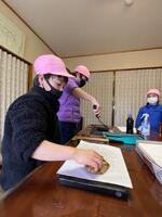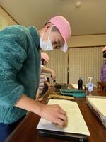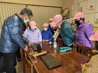 三嶋暦師の館に到着しました。体験学習を行っています。