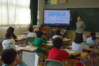 算数では、大きな数のたし算ひき算について、電子黒板を使ってみんなで考えていました。