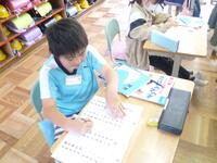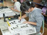 書写の時間です。真剣な取り組みの姿が印象的でした。力の強弱や筆使い等、それぞれが考えながら、納得のいくまで練習をしました。