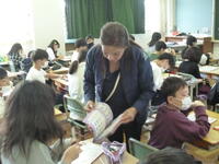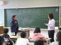 ミルナ先生との英語の授業です。話すこと、書くことの学習に取り組みました。ミルナ先生と話をしながら、自分の名前をローマ字で書いてみました。