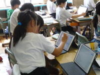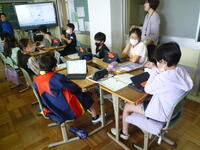 算数の授業でした。友達の発表をヒントに、自分の考えをまとめてみたり、新たな考え方に結びつけたりしていました。また、別の学級では端末を用いて、友達の様々な考え方を共有しながら、自分の考えを広げたり、深めたりしていました。