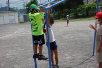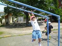 熱中症指数やグラウンドの状況を確認して、元気よく外で遊んでいます。それぞれが思い思いの遊びに夢中です。子どもならではの体の柔らかさ、身軽さ、そして感性の豊かさを感じる3枚です。