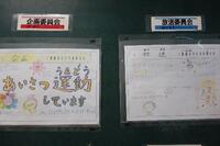 放送室前の廊下の掲示板には、各委員会からのお知らせが掲示されています。来年の創立150周年に向けて、今から企画している委員会もあります。