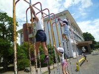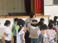 今日は、熱中症指数が「警戒レベル」であったため、長い休み時間になりました。ちびっこ広場のシャワーミストは、火照った顔や身体を冷やしたい子どもたちでいっぱいでした。