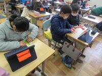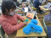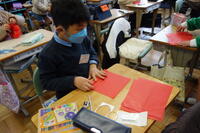 4年生の教室をのぞいてみると…、一生懸命、京紙で花を作っていました。何をしているのか聞いてみると、6年生を送る会の準備でした。6年生への感謝を込めて、作っていました。