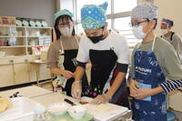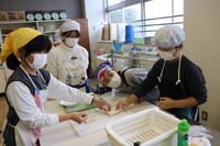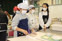 6年2組が家庭科でサンドイッチ作りをしました。小学校生活最後の調理実習、班の仲間と協力してできました。