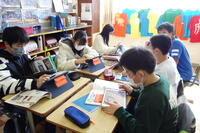 少子高齢化、人権問題、環境問題など、ニュースで耳にしたことはあるけれど、難しくてよく分からない。これからの課題を解決するためには、まず「くわしく知ること」が大切です。班ごとに調べたことを、タブレットを使って発表しました。「なるほど、そういうことだったのか」「この問題を解決するためには・・・」とみんなで話し合いました。