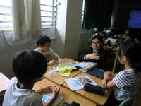 放課後の職員研修の様子です。本校では、毎回研修の時間に、教員が順番に子供の指導に役立つアイディアや授業で使える技術などを紹介する「お宝紹介」のコーナーも設定しています。今回のお宝は、もうすぐ始まる水泳指導と子供の自主学習に役立つ情報についてでした。また、この他、今回の研修では、学年団のグループに分かれ、実際の教材をもとにしながら道徳授業についての検討を行いました。これからも研修を通して、授業改善に努めていきます。
