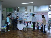 運動会の団体演技で使用する花笠の飾り付けを行いました。きれいな京花飾りを笠に取り付けていくと、ぐっと華やかな雰囲気になります。子供たちは一つ一つ丁寧に、バランス良く取付作業を行っていました。本番がさらに楽しみになっているようでした。