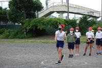 運動場では、ボール投げと50メートル走のタイムを計測しました。