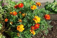 花壇には、マリーゴールド、ナス、キュウリの花が咲いていました。