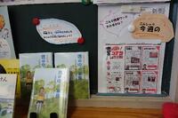 自費出版童話「雲の中の家族」の本三冊を童話創作グループ「かしの木」の方にいただきました。(写真左)ありがとうございました。図書室の入り口のNIEコーナーに足を止めて読んでいる高学年の子がいました。今回のテーマは、「ロゴマーク」、「クアッド」、「時事ワード」です。