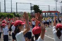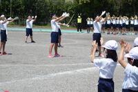 朝から、日差しが強かったですね。青空が広がっていました。今日は、運動会の全体練習を行いました。水分補給や休憩の時間を入れながら、開会式、閉会式等の練習と確認をしました。