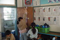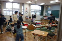 休み時間、それぞれが思い思いの場所で過ごしている時の地震発生。自分の居場所で、どのように自分の身を守るのか、それぞれが考えて行動しました。