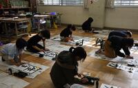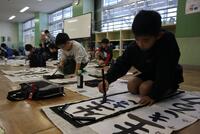 4年2組では、今年最後の習字として書き初めの練習を行いました。全身を使って、力一杯立派な字を書きました。冬休み明けに清々しい気持ちで書き上げた作品を見ることが楽しみです。