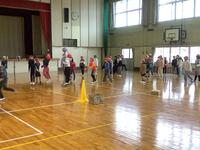 4年生の学年集会です。ドッチボールに一工夫加えられたゲームを行いました。