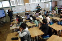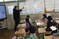 コミュニケーション活動では、「モチはどのようにして食べる」をお題に、きなこ餅、磯辺巻き、大根おろし餅、お雑煮などたくさんの食べ方が子どもたち(+先生)から紹介されました。