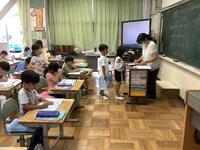 幼稚園・保育園・こども園の先生方が、授業の様子を見に来て下さいました。はりきって授業をする1年生。発表したり、きちんと並んで待てたり、成長した姿を見せることが出来ました。
