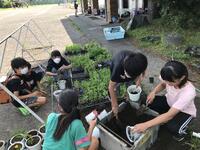 地域の皆様と一緒に花壇に苗を植えました。奉仕作業で種を蒔いた種が大きく育ちました。