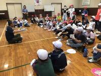5年生のお兄さん、お姉さんと心を合わせて一緒にたったり、座ったりするゲームをしました。