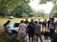 鮎のつかみ取りをおこない、自分たちで調理をして昼食にします。