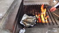 具を挟んだパンをアルミホイルで巻き、牛乳パックに入れて直接火にかけて作るホットドックです。