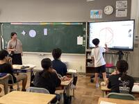 6年生の算数授業の様子です。重なり合う図形のある部分の面積を求める問題に取り組んでいました。担任は、子どもたちがよりイメージしやすいように、図形のモデルを用意し、重なりや分解が再現できるように示していました。それを見た子どもたちは、「なるほど!」と納得。頭の中で、図形を動かしたり、図にかき込みをしたり、解決の糸口がつかめたようです。友達と解き方を確かめ合うことで、より自信がついているようでした。